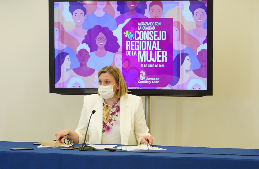 La consejera de Familia e Igualdad de Oportunidades, Isabel Blanco, durante la sesión extraordinaria del Consejo Regional de la Mujer que presidió en Burgos el pasado mes de junio, expuso las principales conclusiones de la evaluación de la Agenda para la Igualdad de Género 2020. Un acto en el que además presentó las áreas que conforman el Plan Estratégico de Igualdad de Oportunidades entre Mujeres y Hombres de Castilla y León para el periodo 2021-2025 y con el que se pretende reducir las desigualdades existentes y reforzar la protección a las mujeres de la Comunidad. Un Plan que incluye, entre otras medidas, actuaciones de itinerarios personalizados de empleo que favorezcan el retorno al mercado laboral de mujeres después de un período de excedencia, víctimas de violencia de género o aquéllas que padezcan situaciones de especial vulnerabilidad.