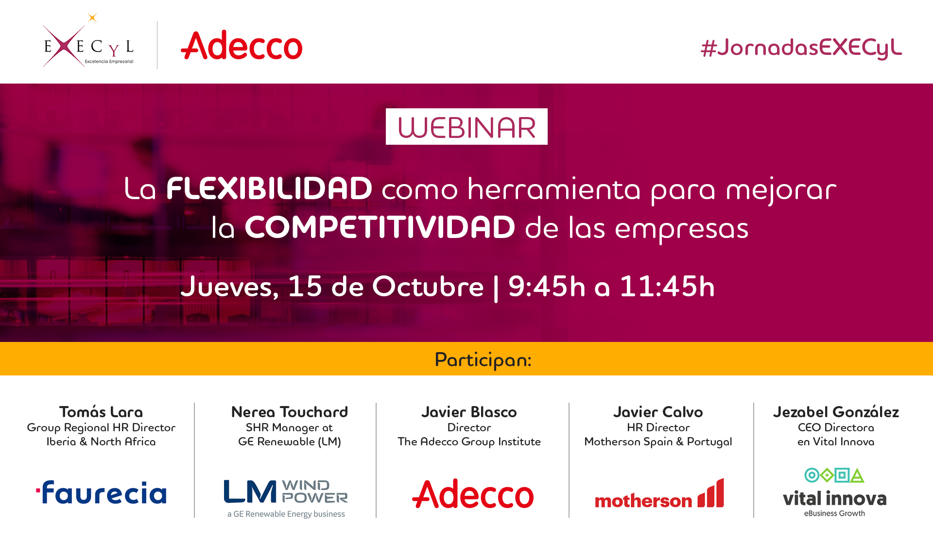 El próximo jueves, día 15 de octubre te invitamos a conocer las claves de la remontada en una jornada virtual en la que compartiremos todas las herramientas de flexibilidad, interna y externa, que tenéis a vuestra disposición; repasaremos las últimas tendencias y novedades en temas de Flexibilidad y conoceremos la experiencia de distintas empresas de nuestro entorno.