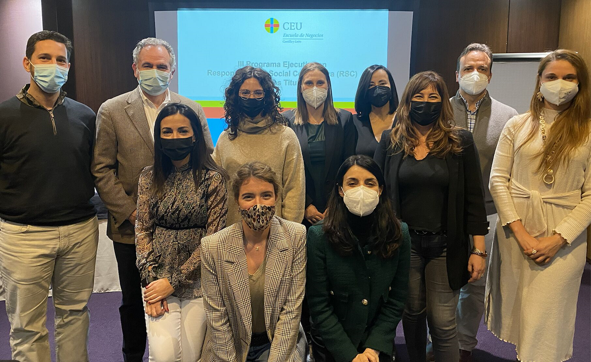 ¡Qué gusto ser testigos de excepción de cómo se desarrollan profesionales de la RSC capaces de transformar nuestras empresas y nuestra sociedad! Para EXECyL es un honor formar parte, desde sus inicios, del Tribunal del Programa Ejecutivo en RSC de la Escuela de Negocios CEU Castilla y León. El viernes finalizó la 3ª edición de esta formación de referencia en nuestra Comunidad con la defensa de los proyectos de los alumnos y nuestra directora, Susana Aguado, compartió la responsabilidad de valorarlos con Cristina Bello (Responsable de Comunicación de Alma Carraovejas y exalumna de la primera edición del Programa), Jesús de Prado (subdirector de la Escuela de Negocios CEU) y con Ana López de San Román (directora académica del Programa Ejecutivo en RSC).