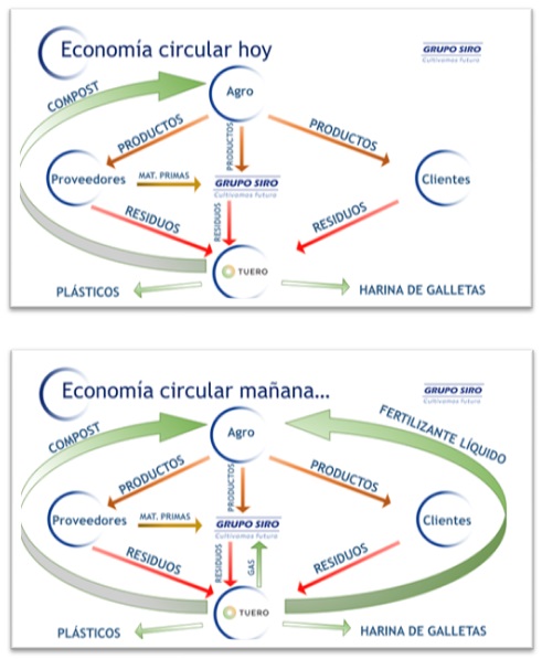 El biogás producido se utilizaría en la caldera de la planta de TUERO, para el proceso de fabricación de harina para piensos, eliminando así el consumo de gas natural y, el digestato o fertilizante, se conduciría automáticamente a un depósito desde donde, una vez deshidratado, se aplicaría a los laboratorios agronómicos de Siro AGRO.