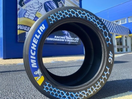 En la Cumbre Movin’On de 2021, Michelin también ha presentado un neumático de competición fabricado con un 46% de materiales sostenibles, equipado en el prototipo GreenGT Mission H24 impulsado por hidrógeno y desarrollado para las carreras de resistencia.