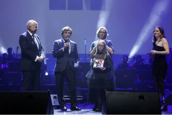 Los también becados Jana Ginesta, una prometedora oboísta diagnosticada de TEA; Lucía Sanguino, joven con Síndrome de Down que destaca por su talento con el contrabajo; Mariano Rosique, pianista diagnosticado de Trastorno Generalizado del Desarrollo, y María Gordillo, violinista con trastorno del aprendizaje y desarrollo, interpretaron ‘Gabriel’s Oboe’, de Ennio Morricone, junto a Ester Sanmartín, violinista con un 80% de pérdida auditiva y también becada por la fundación.
